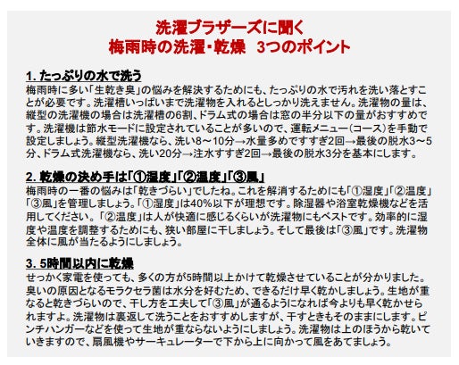 洗濯ブラザーズ監修「正しい洗濯チェックテスト」「梅雨時の洗濯・乾燥 3つのポイント」