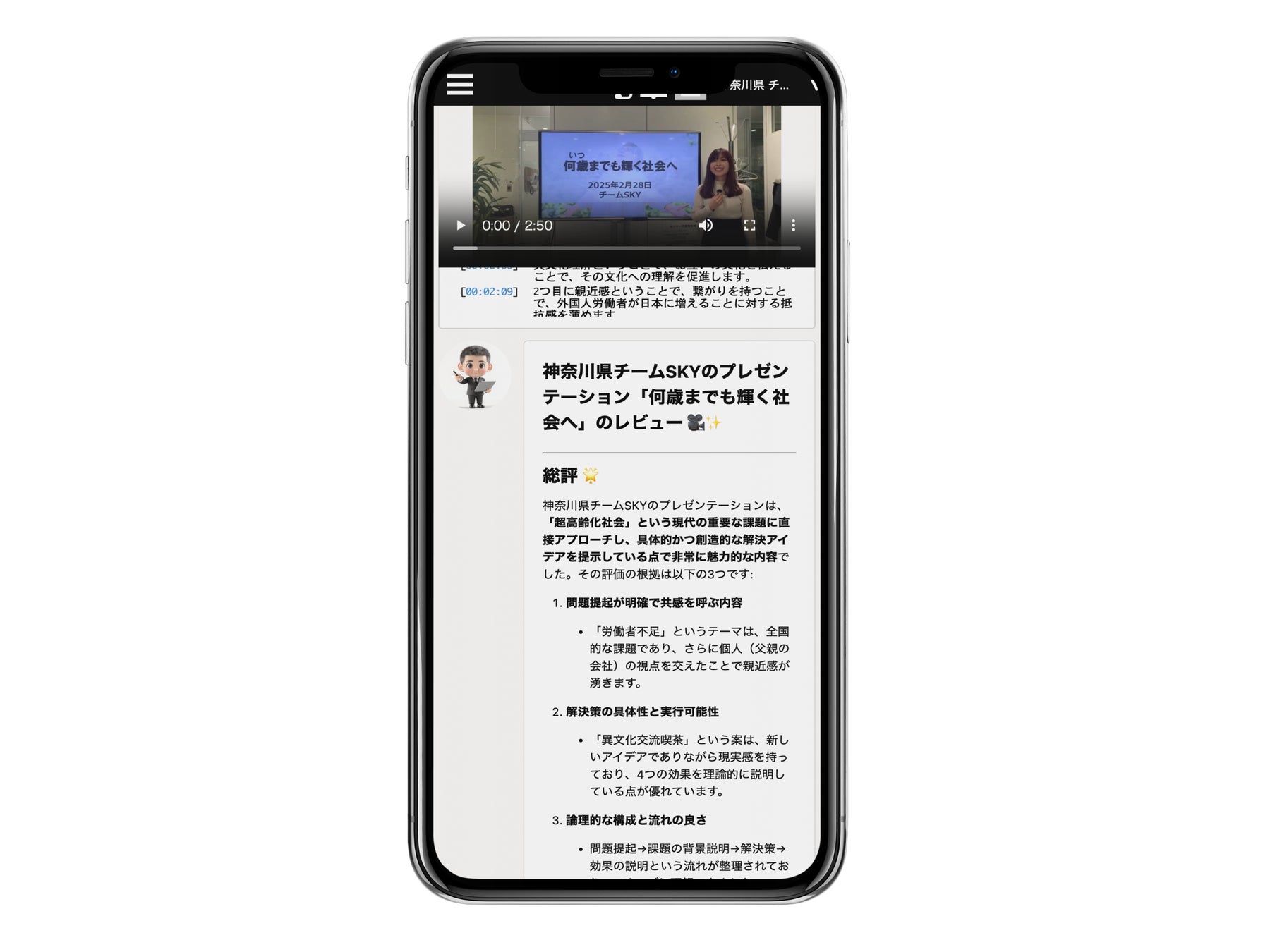 * 大規模イベントへの対応: クラウドベースのシステムにより、全国からの多数の応募動画に対し、場所や時間を問わず、均質で迅速なフィードバックを提供。運営事務局の負担を軽減しつつ、参加者満足度向上に貢献します。