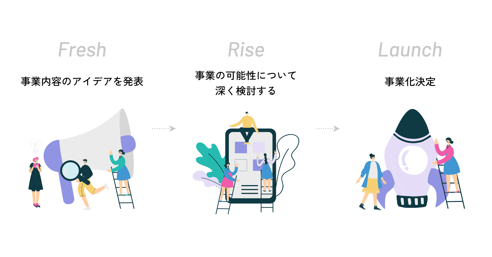 企画が通った場合にはインセンティブが支給されるだけではなく、事業の開発・遂行に必要な資金についても、別途支援が行われます。