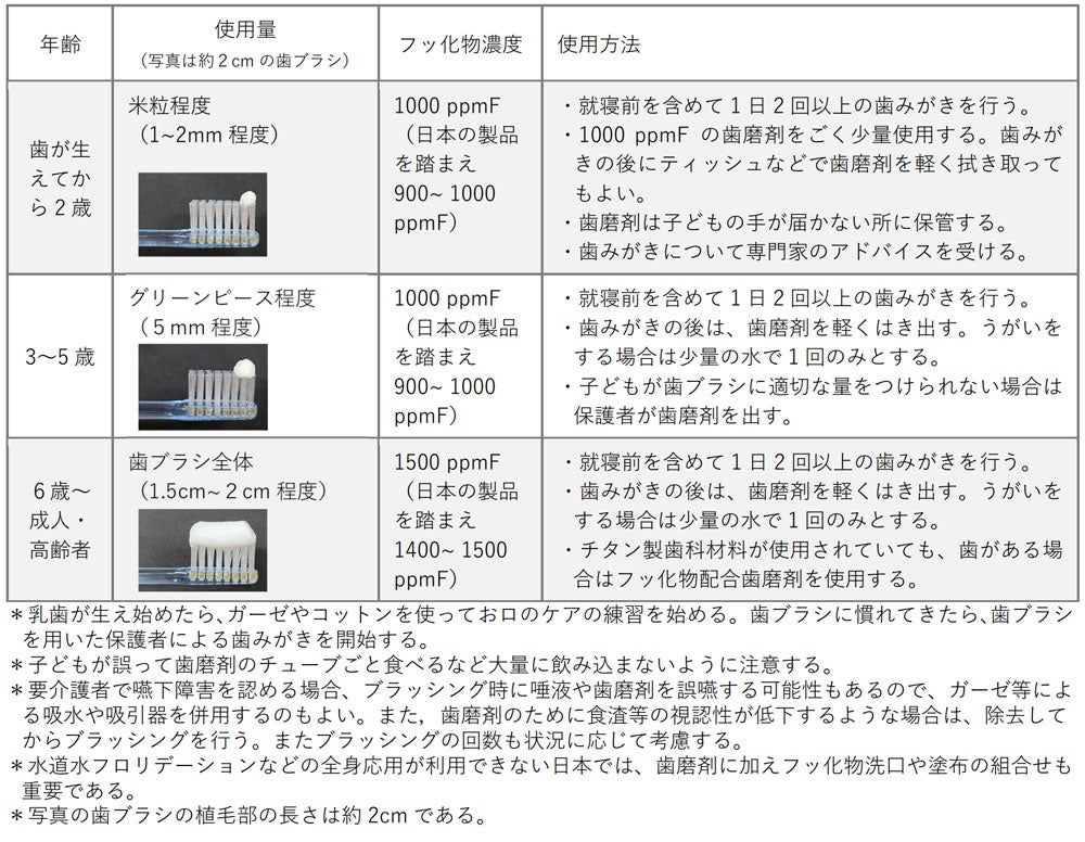 (*2)4学会合同のフッ化物配合⻭磨剤の推奨される利⽤⽅法【普及版】 (日本口腔衛生学会・日本小児歯科学会・日本歯科保存学会・日本老年歯科医学会)
