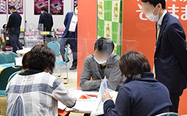 出展社ブースで商品を体験する来場者(第1回「CareTEX札幌’21」会場風景)