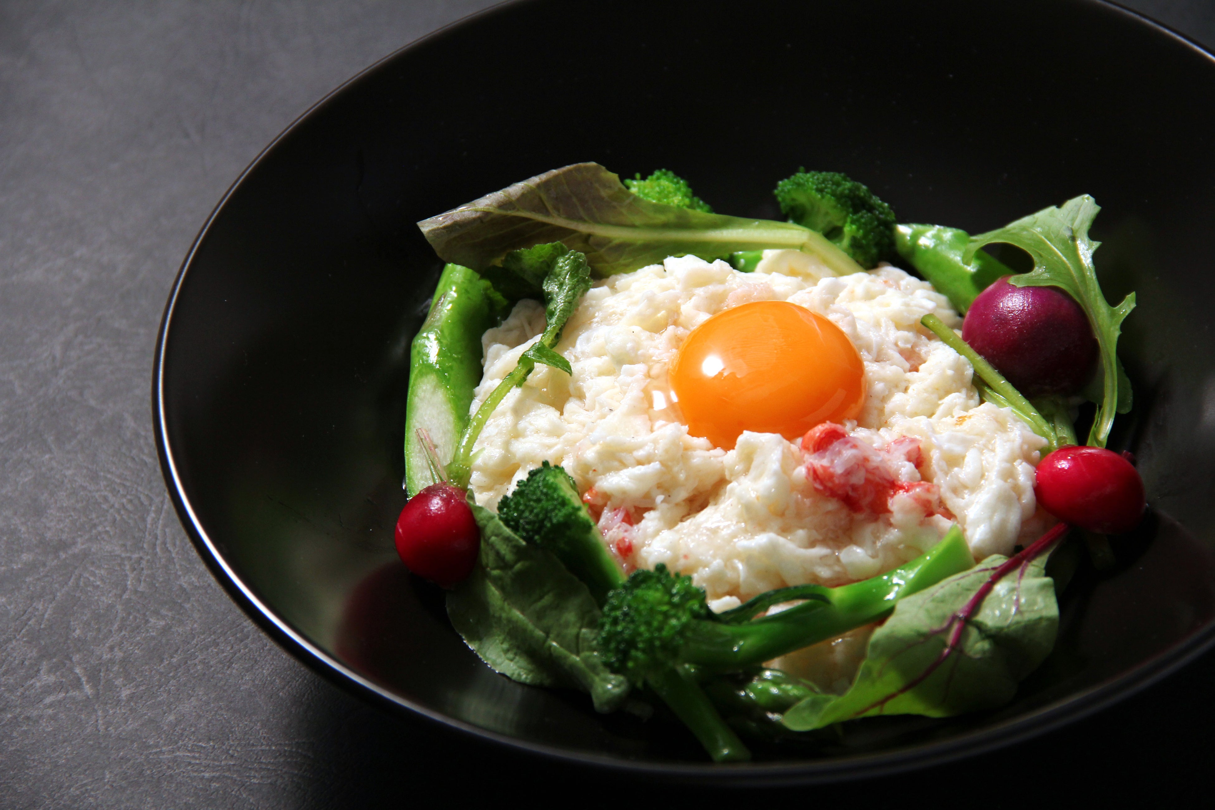 <雲仙卵の卵白炒め 厳選野菜を添えて>