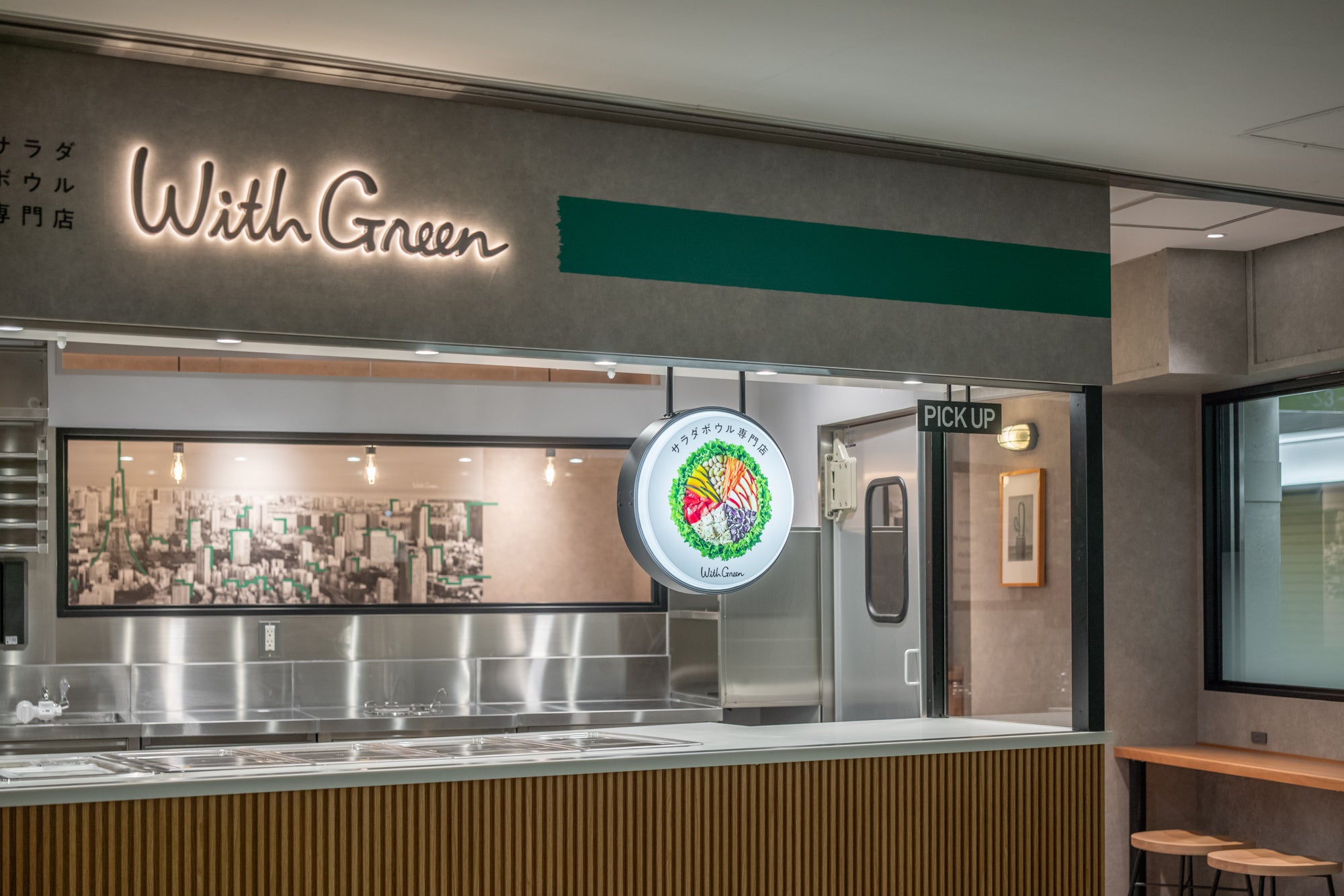 WithGreenは、お客様自身がその日の気分に合わせて、野菜やお肉、玄米などの様々なトッピングやドレッシングをお好みでセレクトいただける、“主食”になるサラダボウル専門店です。創業者である武文智洋がニューヨークで勤務していた際、チームの10人中4人~5人が代わる代わるランチに肉や穀物がたくさん入ったサラダを一食として食べており、自身も食べるようになりました。そのアメリカのサラダ文化を日本らしくアレンジし、ヘルシーで美味しいサラダボウルを提供します。今後も東京を中心に地方都市圏にも出店を進めていき、より多くのエリアで“主食”としてのサラダを提供することによって、日本の食生活を健康的に変えていきます。