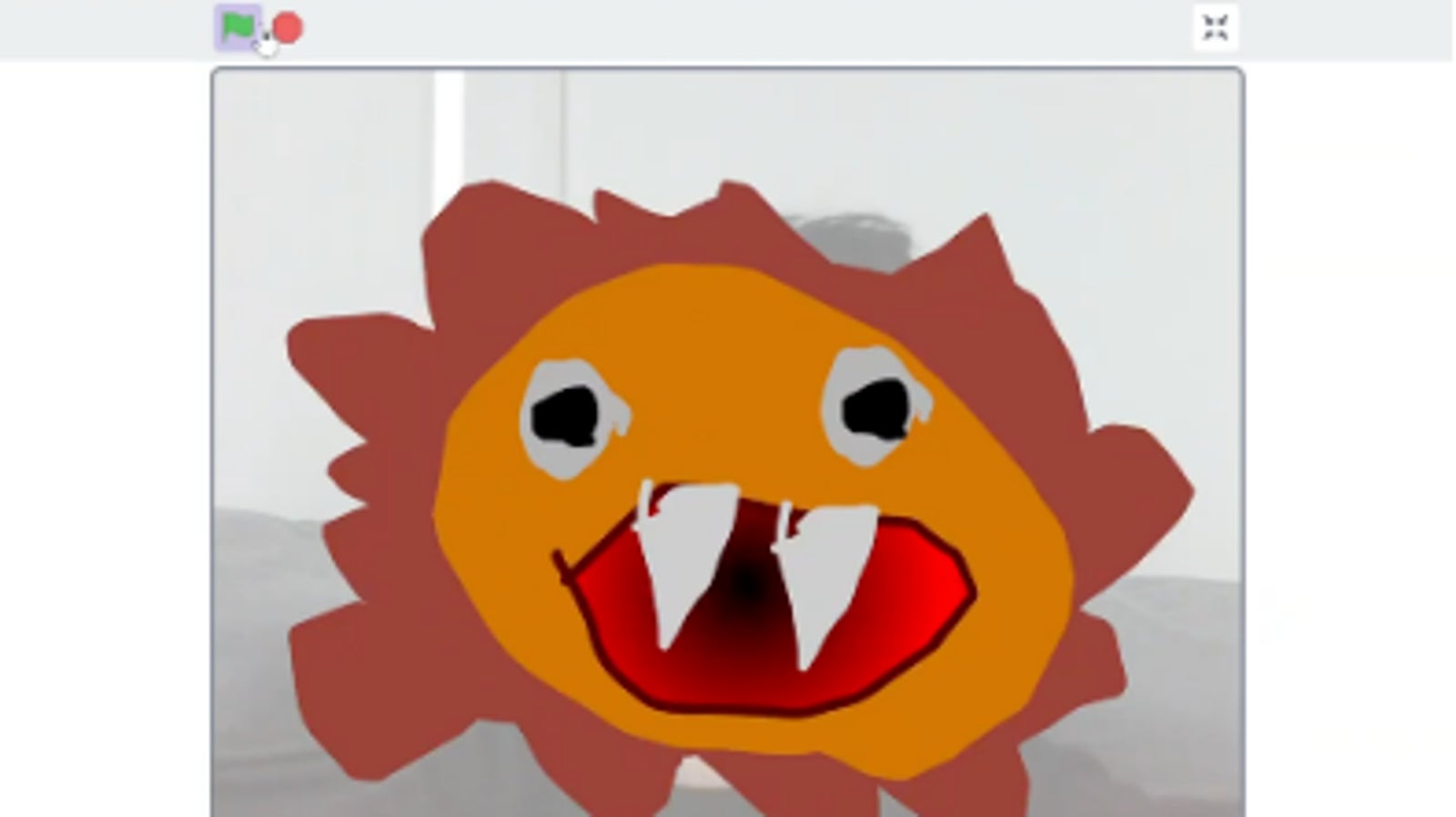 「ライオン、サル、ゾウ」など呼ぶとどうぶつが現れ、カメラに映る人の動きに合わせて動きます。 |