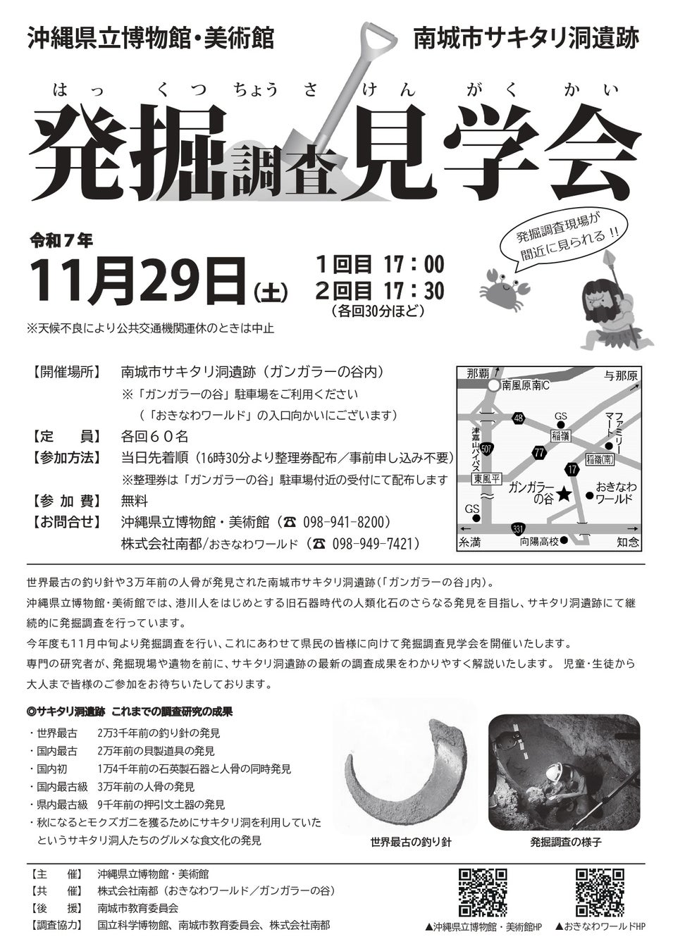 おきなわワールドおよびガンガラーの谷を運営する株式会社南都では、地域の自然や文化遺産を守りながら、その価値を広く伝える取り組みを続けています。今回の見学会もその一環として、サキタリ洞遺跡の周知と教育普及を目的に実施いたします。