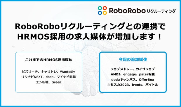 今回の連携では、「RoboRoboリクルーティング」で既に連携している求人媒体へ「HRMOS採用」が連結するため、自動連携対象は8媒体から18媒体へ増加し、より多くのお客様の課題解決に繋がります。また、これまで手動で実施していた採用管理システム(ATS)への求職者情報転記を自動化させることができ、業務負荷の軽減に成功しています。