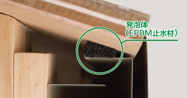 まず、製品本体に発泡体(EPDM止水材)を付属し、野地板部分に圧着させて取り付けることで、シーリング施工を省略可能に。