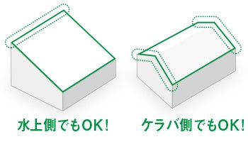 送風散水試験を行い、高い防水性能を確認しています。雨風が吹き込みやすい水上側・ケラバ側を含め、屋根の全周に施工が可能です。また有効換気面積100㎠/mを確保。良好な小屋裏換気に貢献。スムーズな換気や通気を実現します。