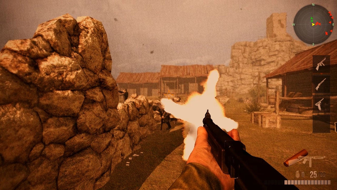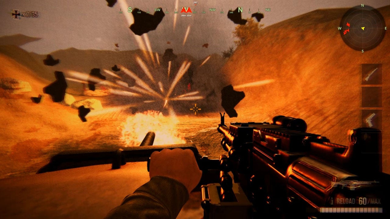 第二次世界大戦で使用された様々な武器を収集·使用することができます。