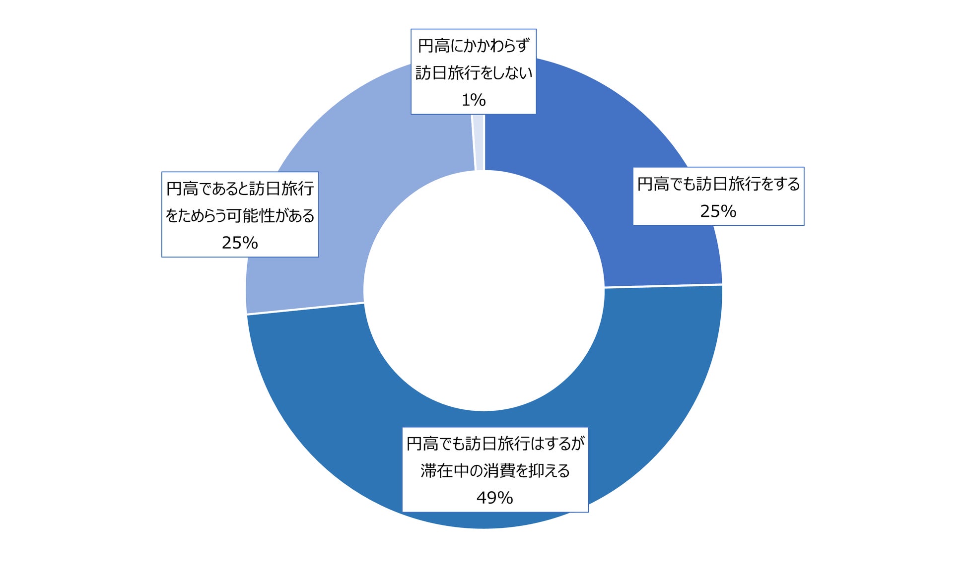 円高であっても訪日旅行をする層は74%、円高であると訪日をためらう可能性がある層は25.5%という結果になりました。