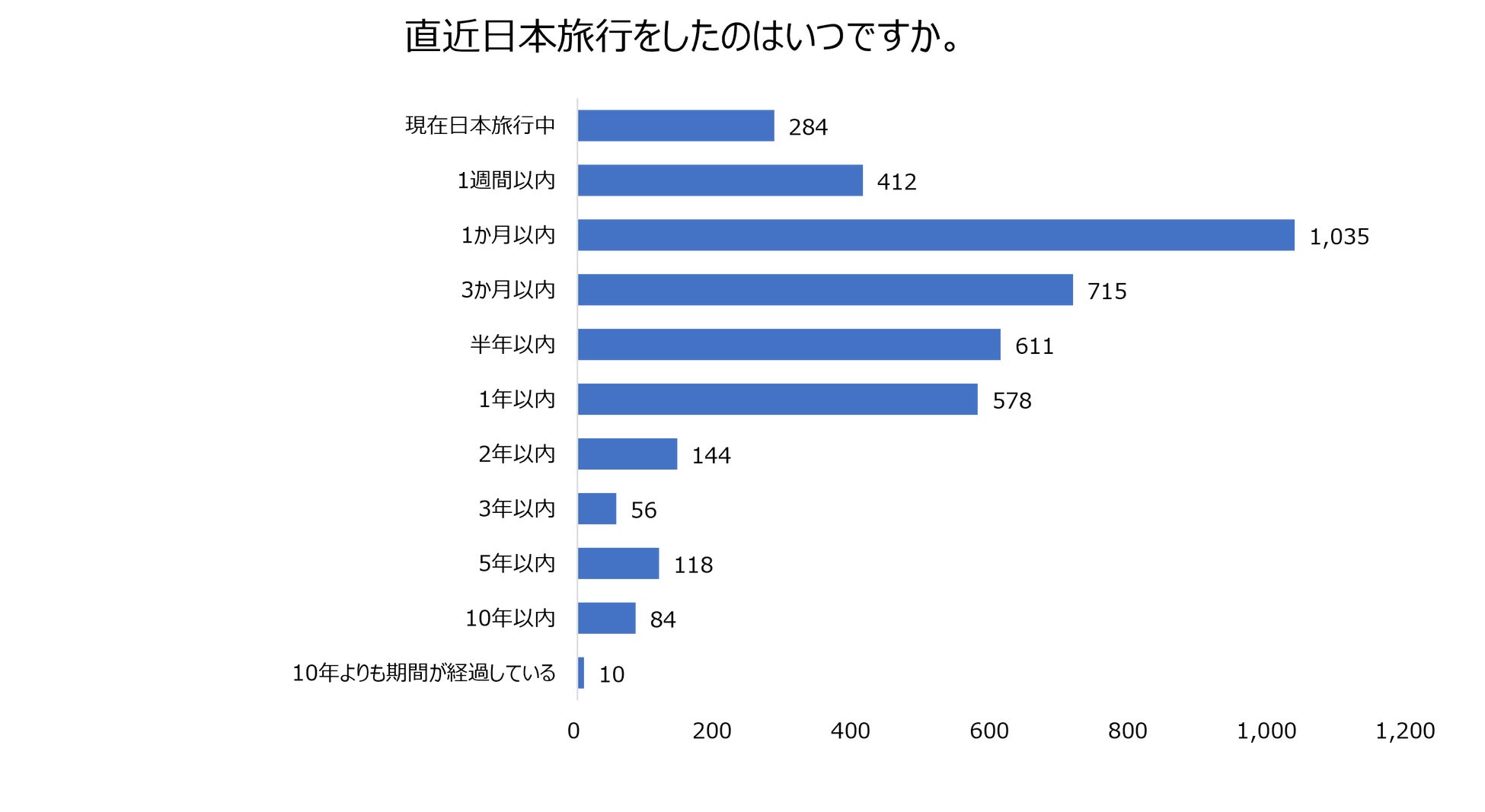 今回のアンケートの回答者の94.8%は訪日経験者であり、87.0%は1年以内の旅行者。