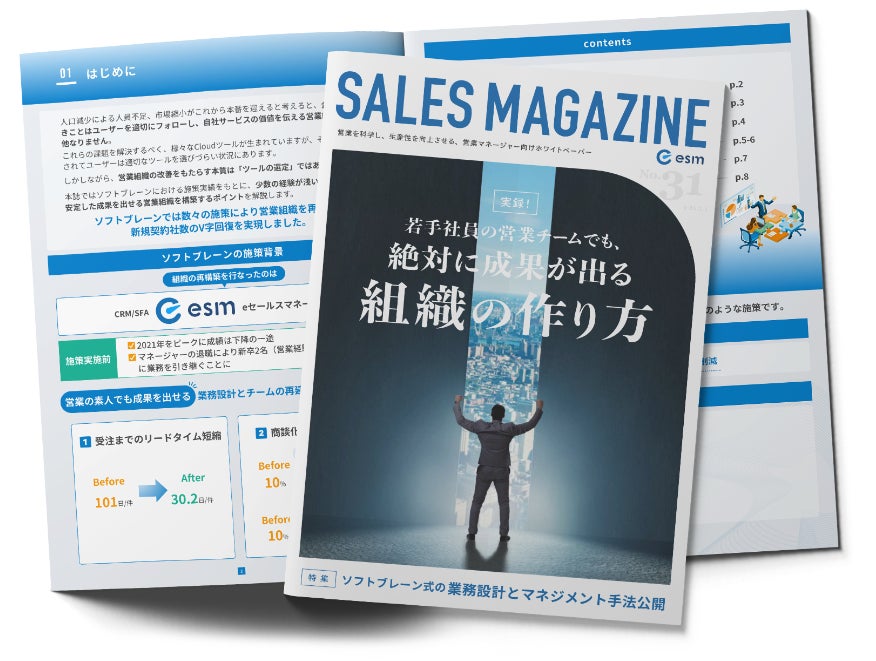 企業競争力向上のためのCRMであるesm(eセールスマネージャー)を提供するソフトブレーン株式会社(本社:東京都中央区、代表取締役社長:豊田浩文、以下「ソフトブレーン」)は、自社運営の営業力強化メディア「営業ラボ」において、「若手社員の営業チームでも、絶対に成果が出る組織の作り方 ソフトブレーン式 業務設計とマネジメント手法」と題した無料ホワイトペーパーを公開しました。