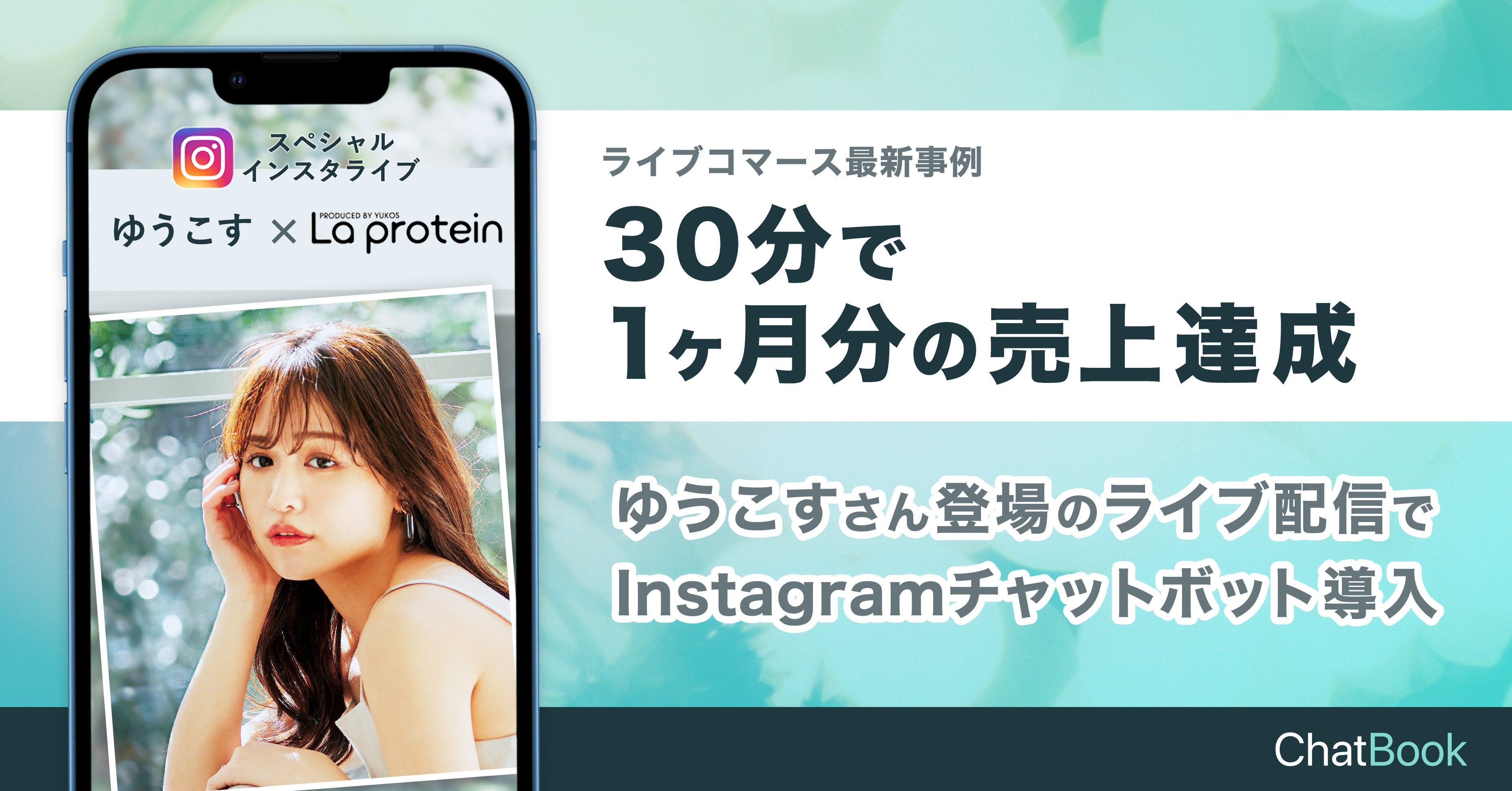 チャットブック社が提供するInstagramチャットボットを、SNSフォロワー190万人以上を誇るゆうこすさんがプロデュースするプロテイン「La protein(ラ プロテイン)」のInstagramライブでご活用いただきました。