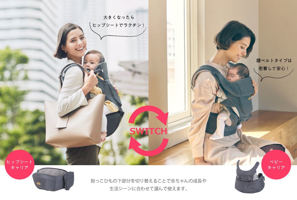 成長するにつれ、何本も抱っこひもを買い替えるママパパが多い現状から、「成長に合わせて快適な抱っこができる」「新生児から使えるオールインワンヒップシートキャリア」をコンセプトに『切り替えて使える新しいカタチの抱っこひも』を提唱しています。