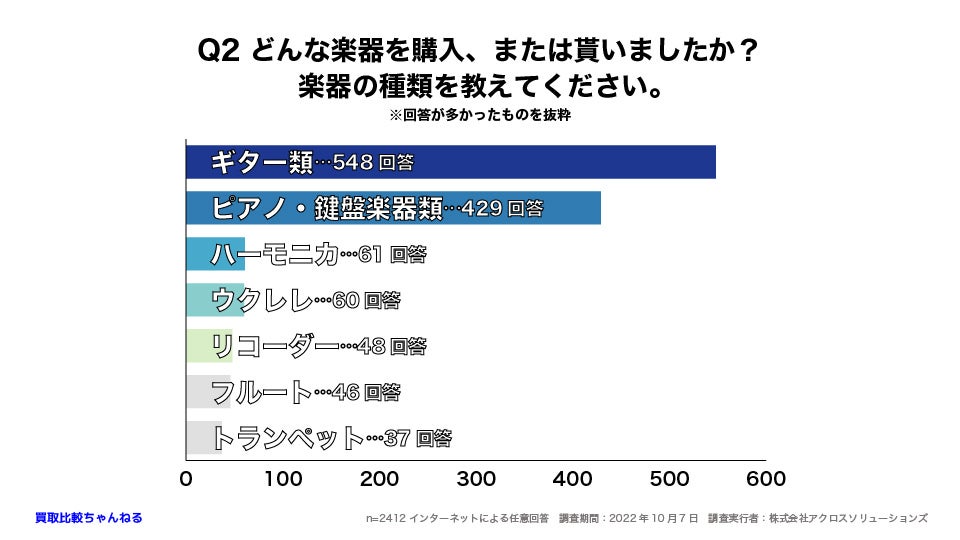 株式会社アクロスソリューションズと株式会社浜屋が共同運営している買取比較ちゃんねる(URL:https://www.hamaya-corp.co.jp/media )は、15歳未満〜60歳以上の男女2412人を対象に「楽器に関する意識調査」を実施しました。
