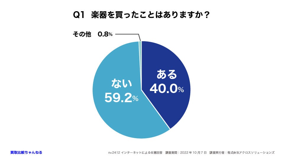 Q1 59.2%が楽器を買ったことがない。