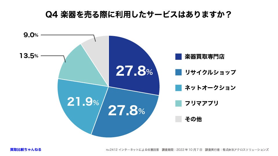 Q4 楽器買取専門店、リサイクルショップで売ったという人同じく27.8%