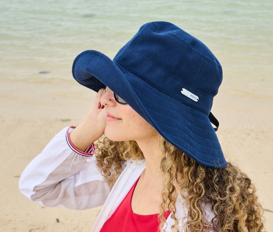 UVカット率99%以上のエポカルオリジナルUVカット素材(酸化チタン練りこみポリエステル糸使用)を使用したつばの長い紫外線対策用の帽子。特殊素材を使用していますので、洗濯を繰り返してもUVカット効果は落ちません。