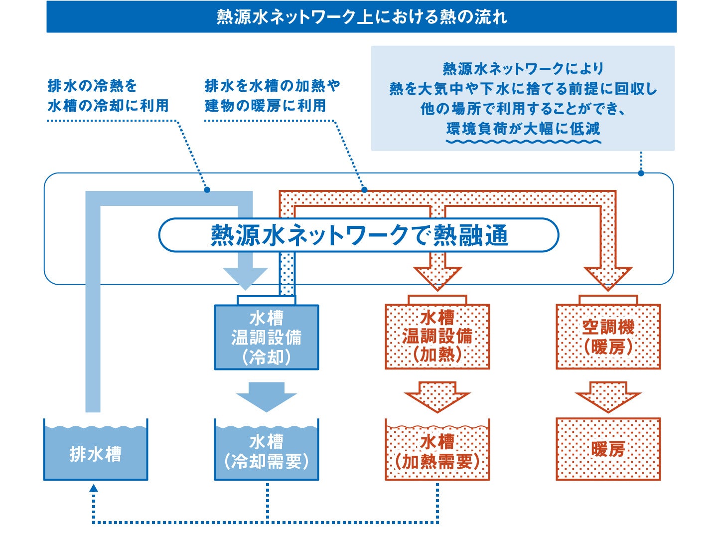 こうした経験から、本事業では“熱”、“水”、“防災”、の3つの軸で、大型災害時のエネルギー面での自立、通常時におけるエコな施設整備を含めたサステナブルな取組みを実施いたします。