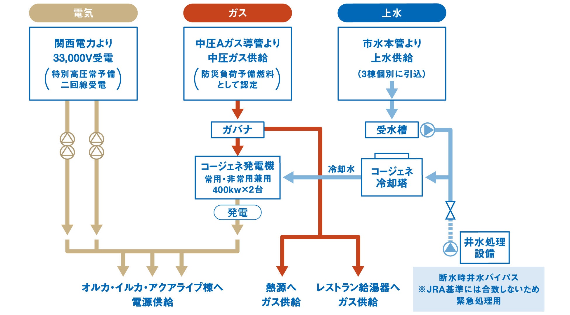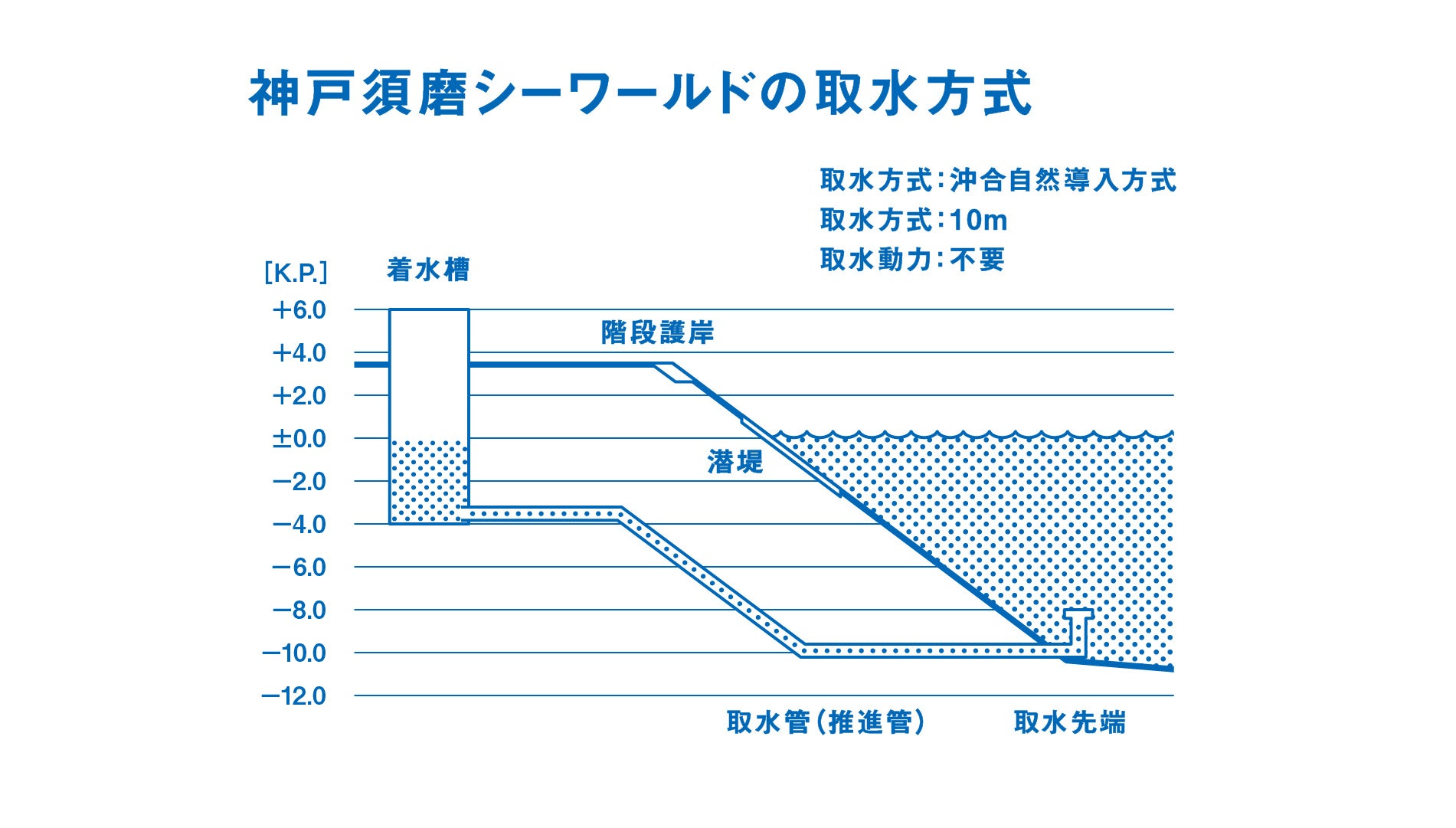 阪神淡路大震災の被災から水・電力・熱の自立が重要であると考え、海水取水設備により通常時・非常時に動力不要で取水するなど、事業継続計画(BCP)を強化いたします。