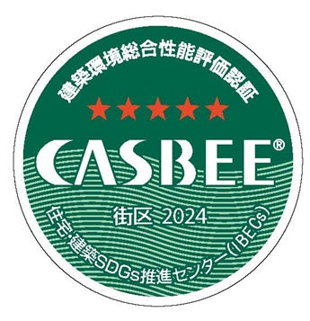 産・官・学共同プロジェクトにより開発された『建築環境総合性能評価システム(CASBEE)』は、建築物を環境性能で評価し、格付けする手法です。本事業は、単体建築物だけでなく建築群を含む面的整備プロジェクトとしての環境性能を評価する「CASBEE街区」にて、2023年に新基準である2023年版が制定されてから、国内初となる「CASBEE街区2023年版Sランク」を取得いたしました。(旧基準含め8物件目)