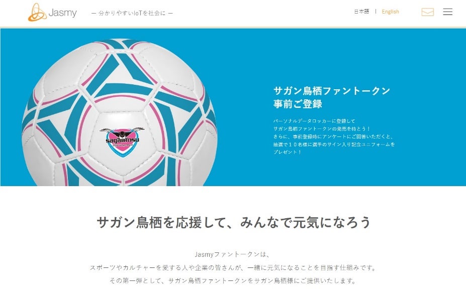 IoT向けのプラットフォームおよびソリューションを提供する、ジャスミー株式会社(本社:東京都港区 代表取締役:佐藤一雅 以下:ジャスミー)は、オフィシャルスポンサーを務めるサガン鳥栖へサガン鳥栖ファントークンを提供いたします。2022年7月2日(土)よりサガン鳥栖ファントークンサイトを公開し、事前登録の受付を開始しました。