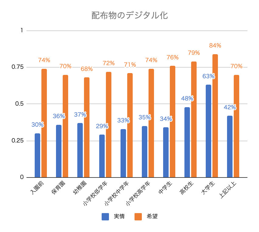 <配布物のデジタル化における保護者の希望と導入の実情>