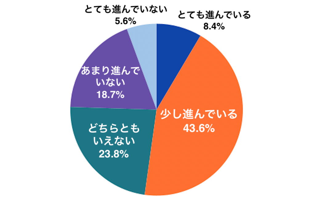 - 【コロナ前と比較して、半数の人がデジタル化が「進んでいる」と回答】