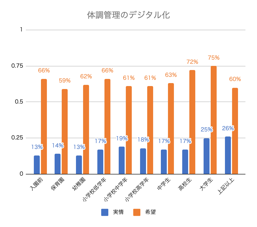 コロナ下における教育現場のデジタル化の現状。体調管理のデジタル化は保護者希望の18%程度にとどまる