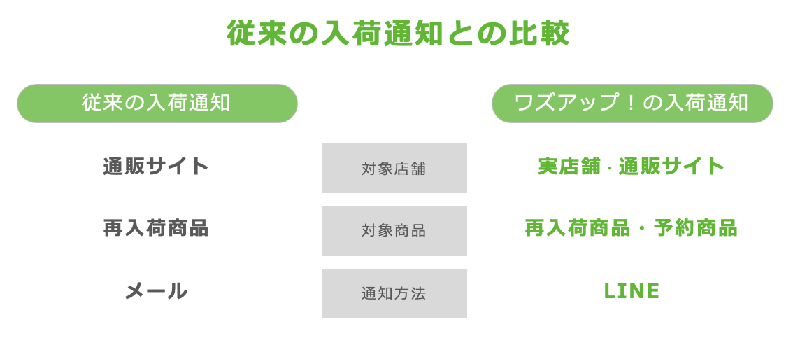 「 ワズアップ! 」と「 futureshop 」は2019年より連携しておりましたが、このたびAPI連携をベースとした連携機能強化を実現いたしました。これにより「 futureshop 」または「 futureshop omni-channel 」( 以下、futureshop )をご利用中のEC事業者さまは、より迅速かつ正確に連携された商品データをLINEで配信できるようになったほか、話題の新機能「 LINEによる実店舗の入荷通知 」をご利用いただけるようになりました。