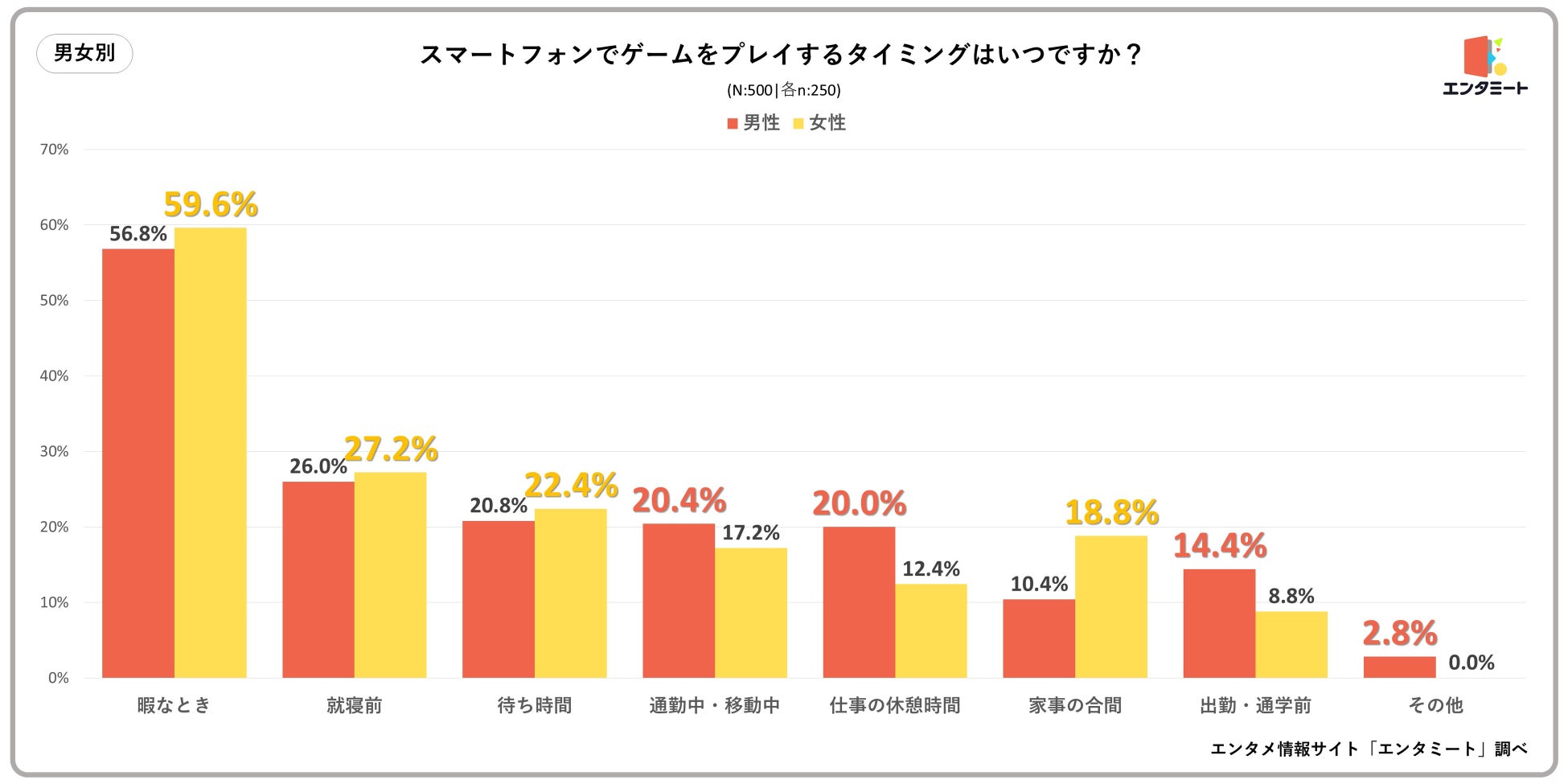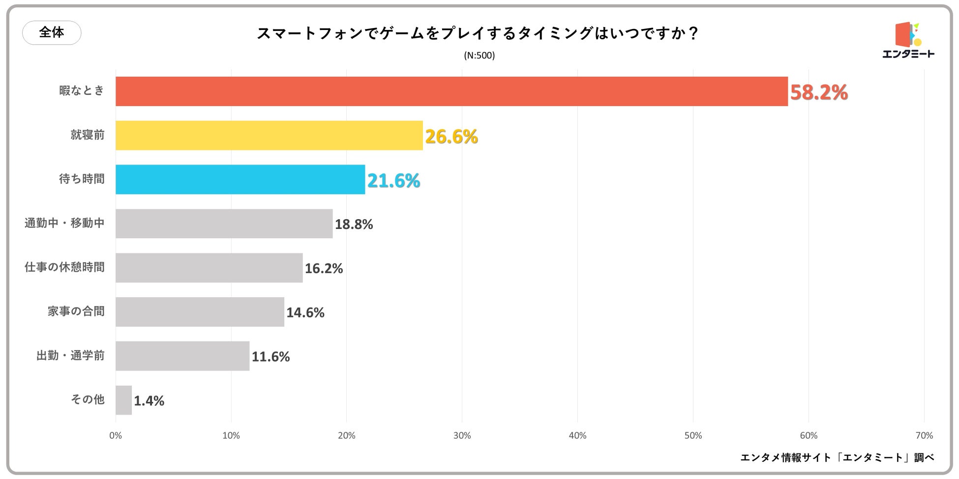 どんな時にスマホゲームをする?第2位は「就寝前」で26.6%、58.2%の第1位とは?