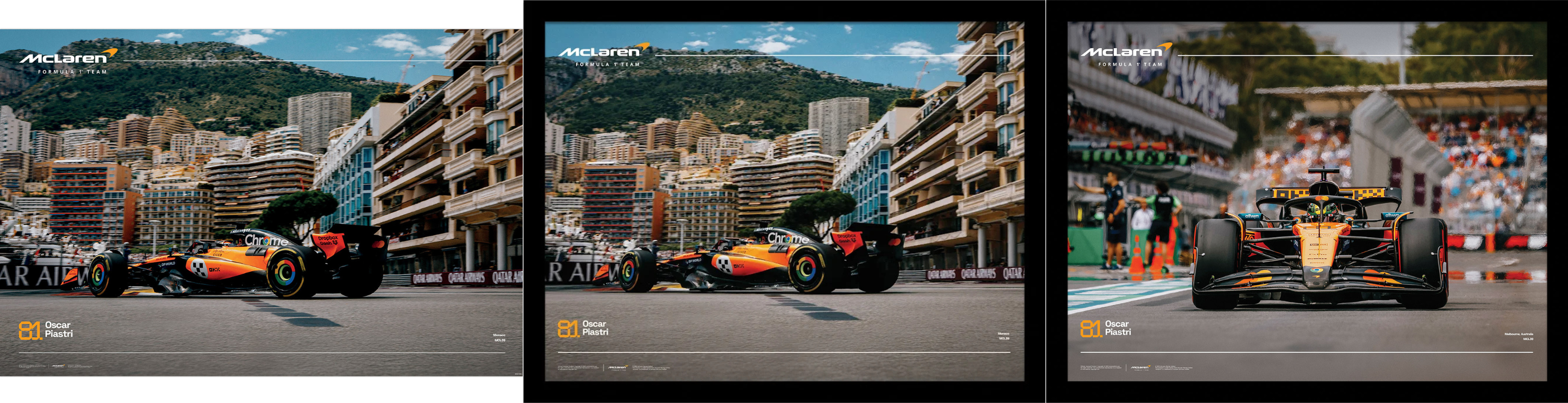 (左)マクラーレン(McLaren)ピアストリ|メルボルンGP アートフレーム / インテリア額[価格: 4,980円(税込)]