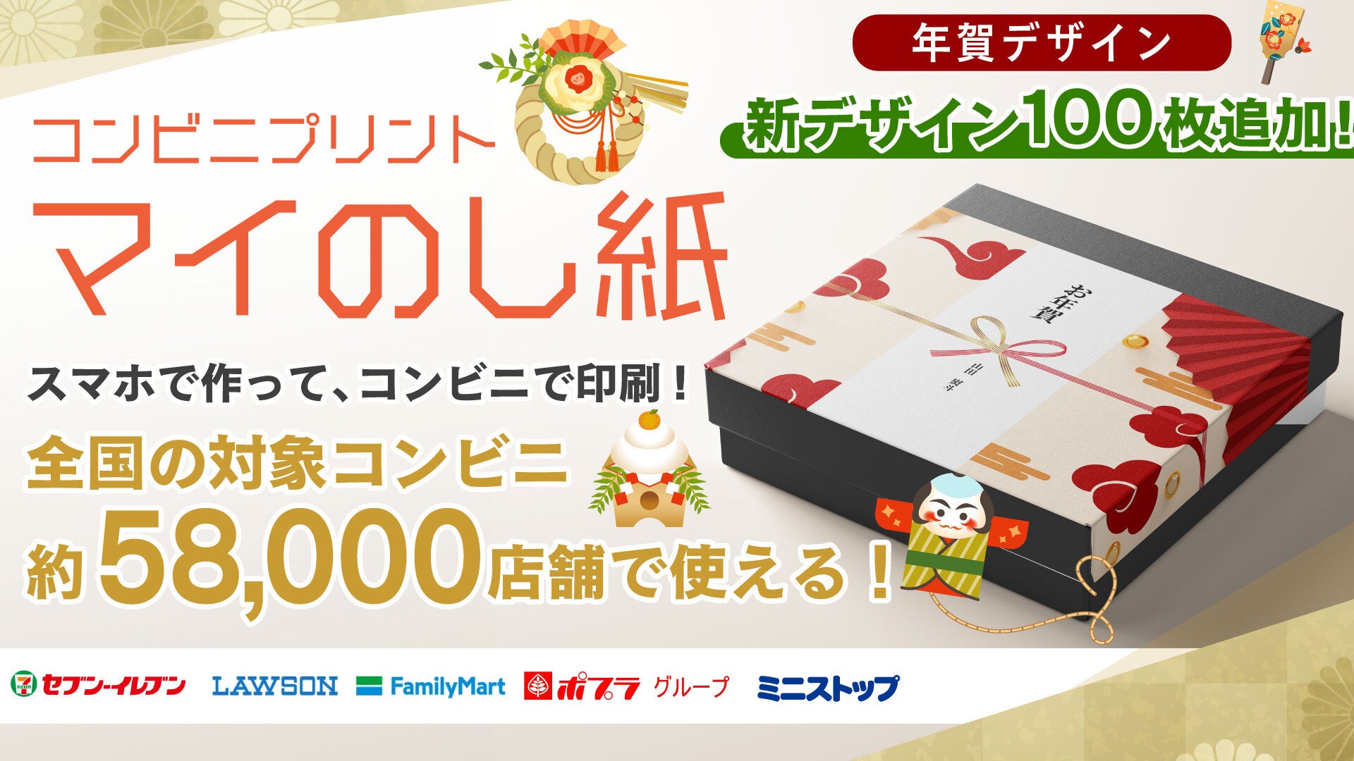 ギフトを飾る「のし紙」をコンビニで手軽にプリントできることで大好評の『マイのし紙』に、「年賀デザイン100種類」が追加されました!お正月のギフトに素敵な「のし紙」、ぜひご利用してみてください!