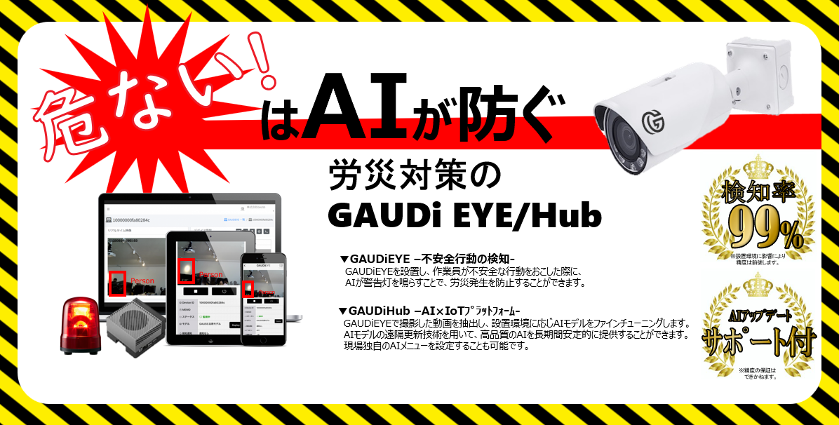 労働災害対策AIのGAUSSがエッジAIカメラGAUDiEYE・AI×IoTプラットフォームGAUDiHubを大幅アップデート