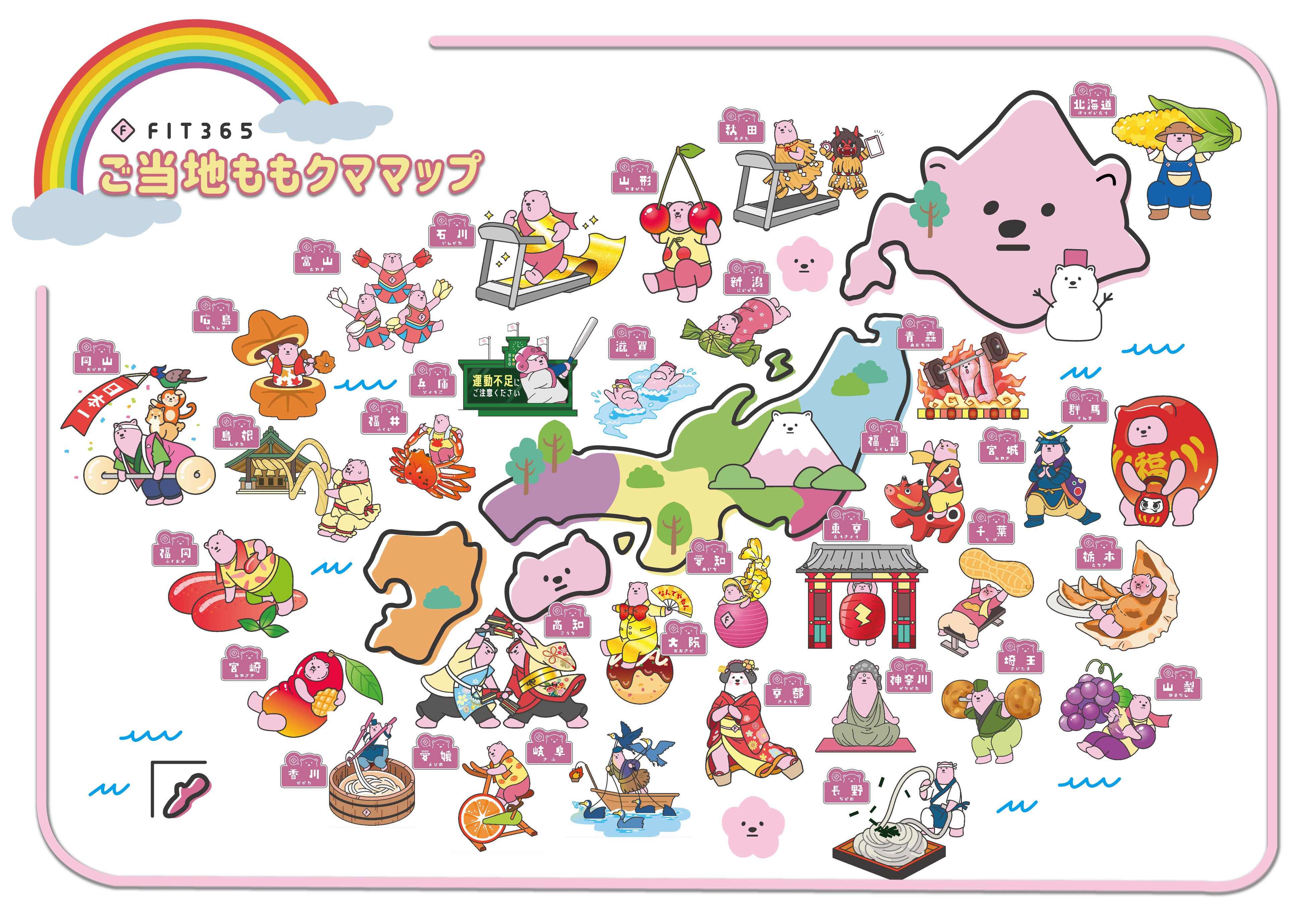 チャレンジにご参加頂いた方々には「FIT365」のブランドキャラクター「ももクマ」のご当地オリジナルデザインのグッズをプレゼントし、店舗地域の皆様への感謝を伝えてまいります。