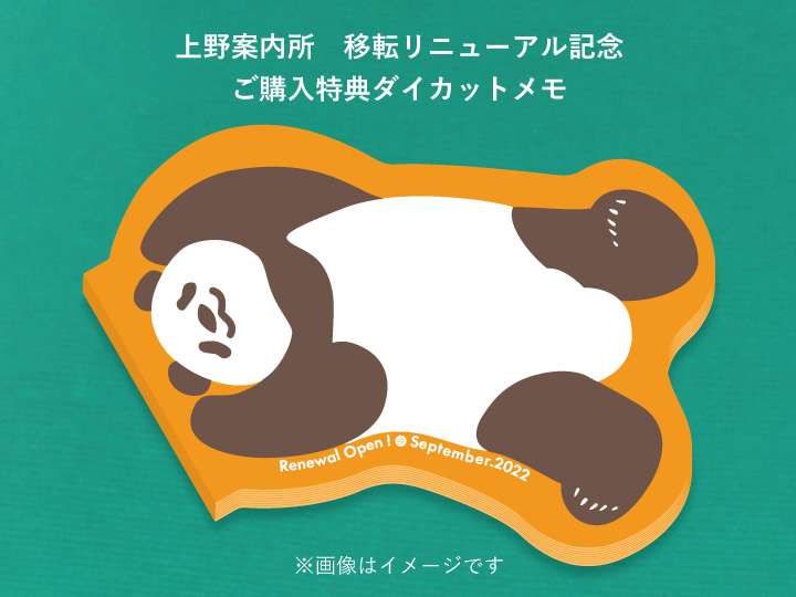 それを記念し、特別感ある新作パンダグッズを発売いたします。また、税込3,300円お買い上げ毎に、オリジナルミニダイカットメモ(非売品)を1点プレゼント! ※無くなり次第終了