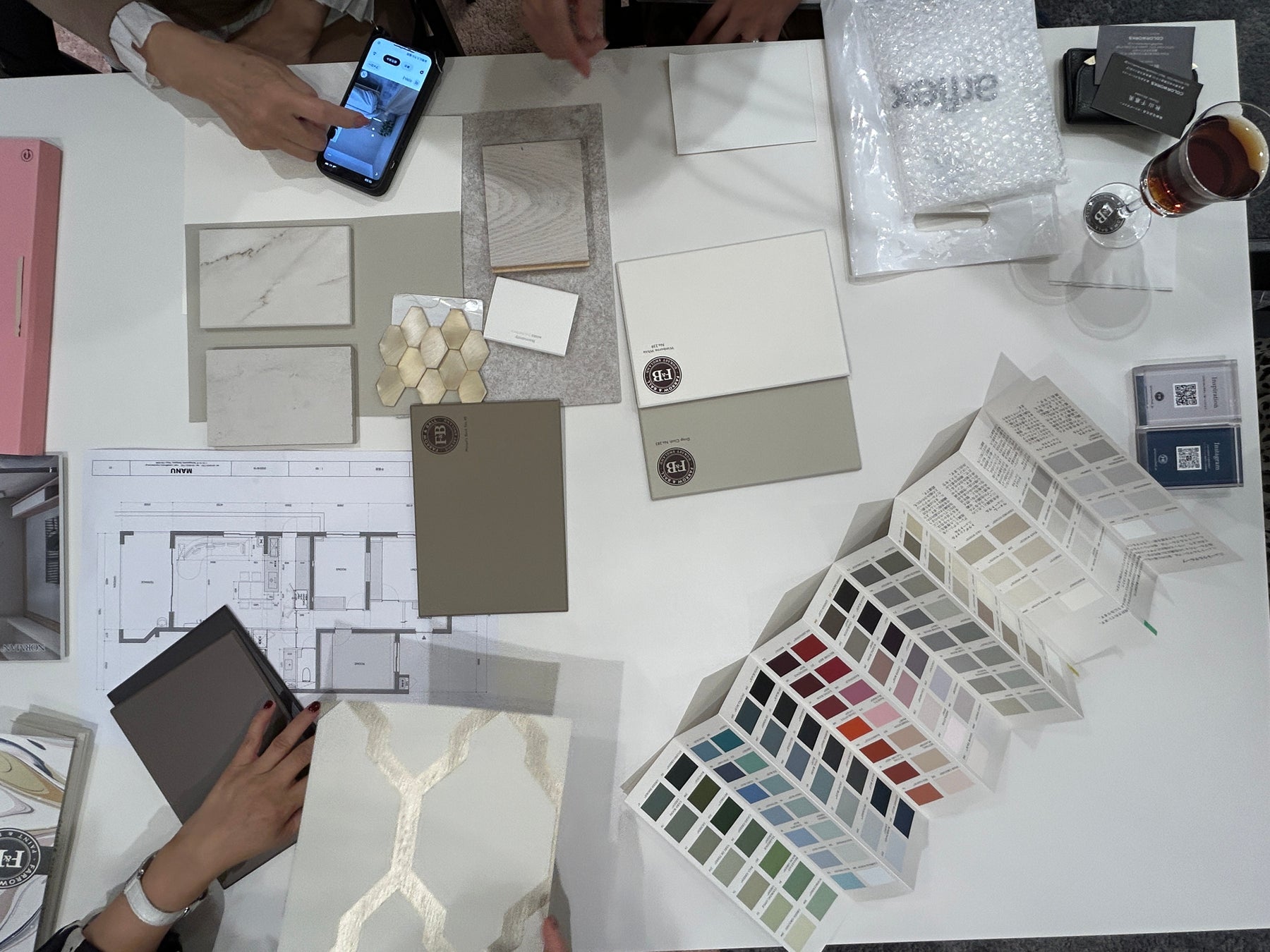 初めに色彩設計を行うことで、床材、壁紙、家具など、様々な要素を調和のとれた空間に