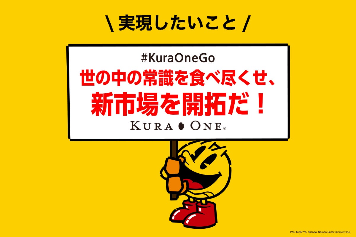 #KuraOneGo 第二弾のこのプロジェクトは、世界で最も知られたIPの1つでピザからキャラクターのアイデアが生まれたゲームで大人気のバンダイナムコの「パックマン」がKURA ONE®とのコラボレーションデザインとして登場します。「世の中の常識を食べ尽くせ、新市場を開拓だ!」のメッセージ、そして「Origin (原点) and New (新市場)」をコンセプトにしたオリジナルの限定デザインです。