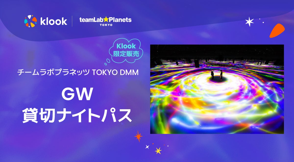 旅行・レジャーのeコマースプラットフォーム「Klook(クルック)」(以下、当社)は、4月8日、「チームラボプラネッツ TOKYO DMM」(東京・豊洲)との特別共同企画として、5月1日〜5月7日のゴールデンウィーク期間中にご利用いただける1日50組100名様のペア鑑賞チケット「GWナイトパス」を販売開始します。本チケットは、通常営業後の夜間にKlook独占販売枠として施設を貸し切り、落ち着いた雰囲気の中、カップルや友人2人で思う存分アートを堪能いただけるよう企画したものです。この企画は、昨年当社とチームラボプラネッツ TOKYO DMMで共同販売したペア鑑賞チケット「クリスマスパス」が大変好評だったことを受けたもので、今回の「GW貸切ナイトパス」はさらに、チームラボプラネッツの作品に使われたラン1株を参加者全員に当日プレゼントします。