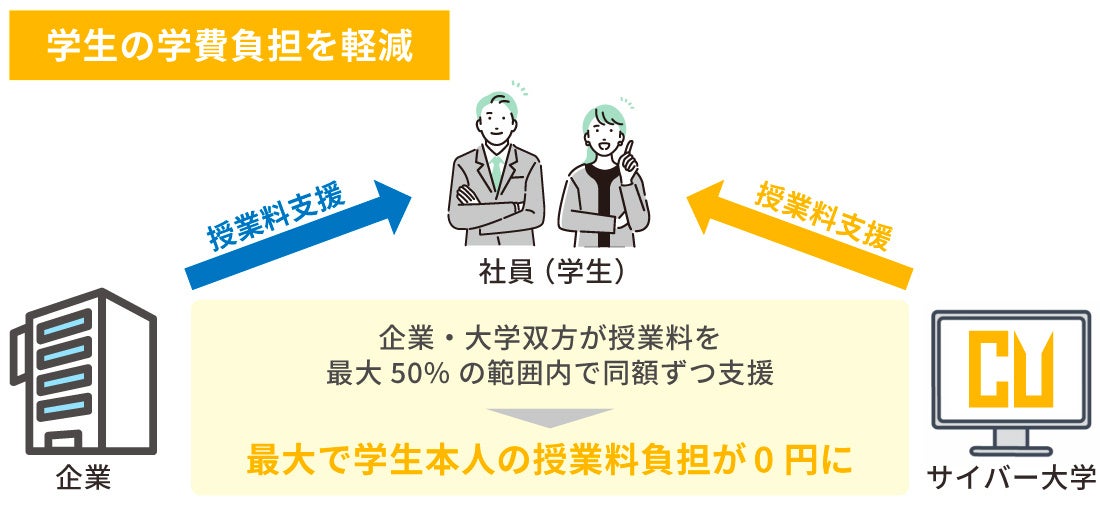 サイバー大学、社員の大学進学を支援する企業と連携する「授業料マッチングファンド」を開始