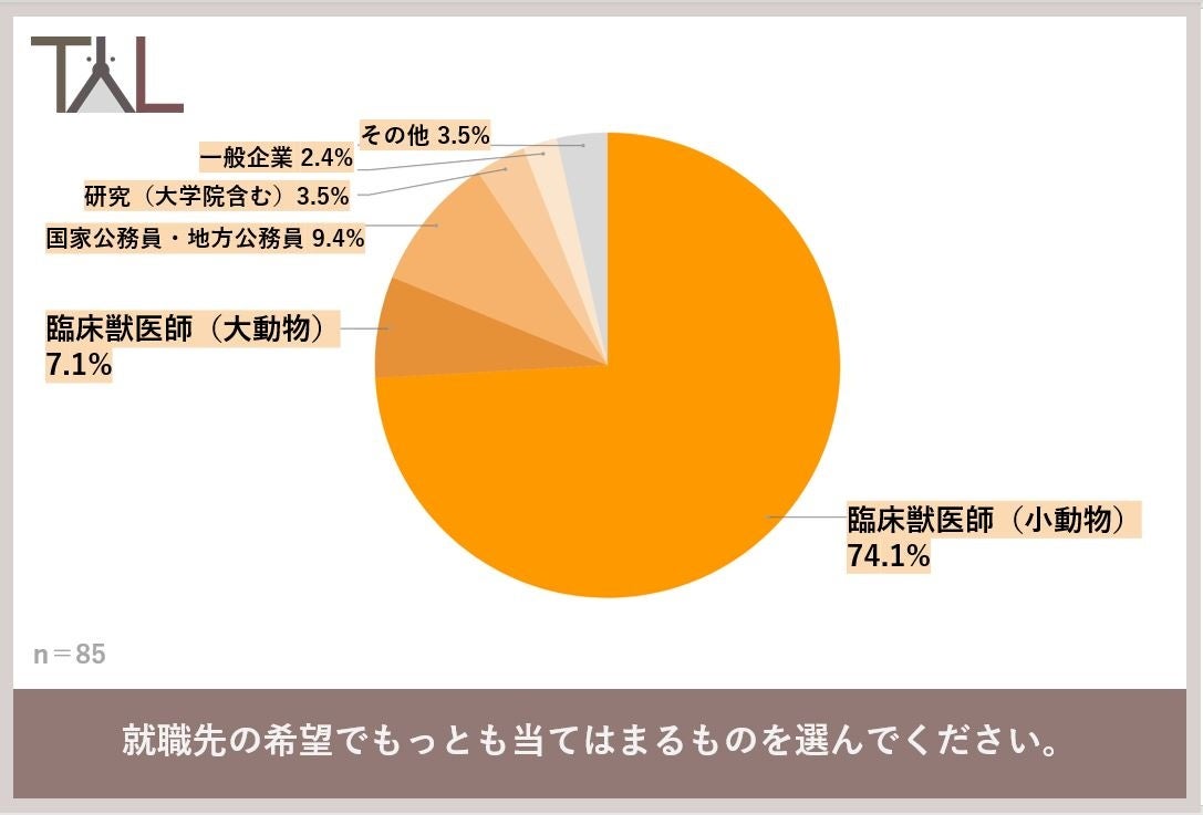 ~獣医師の就職支援をおこなうTYL、獣医学生85名にアンケート調査を実施~