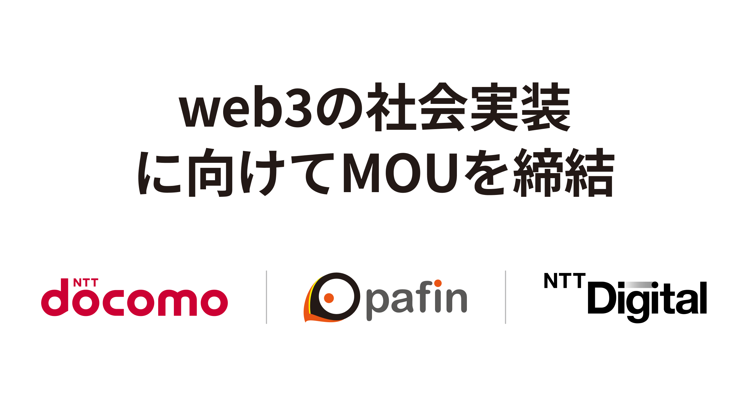pafin、NTTドコモ及びNTT Digitalと「Web3の普及および社会実装の加速に向けた連携」について基本合意書を締結