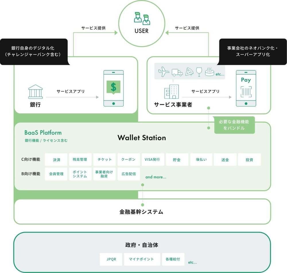 インフキュリオンが提供する、BaaS(Banking as a Service)プラットフォームサービス「ウォレットステーション」は、バーコード決済を中心に、様々な金融・決済機能をもつBaaS(Banking as a Service)プラットフォームです。金融機関や商業施設のオリジナルウォレットをスピーディーに構築するとともに、ニーズに応じた機能カスマイズも可能。オープンAPIを活用した新しい金融サービスを実現します。