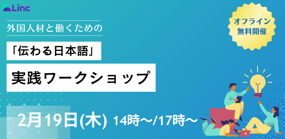 「日本に来てよかった」を最大化することをミッションに、外国人材の採用・定着支援AIプラットフォーム「Global Hub(グロハブ)」を展開する株式会社Linc(本社:東京都千代田区、代表取締役:仲 思遥、以下「当社」)は、2026年2月19日(木)、外国人材と現場で働く日本人スタッフ向けに、業務指示や職場コミュニケーションに特化した実践型ワークショップを開催いたします。