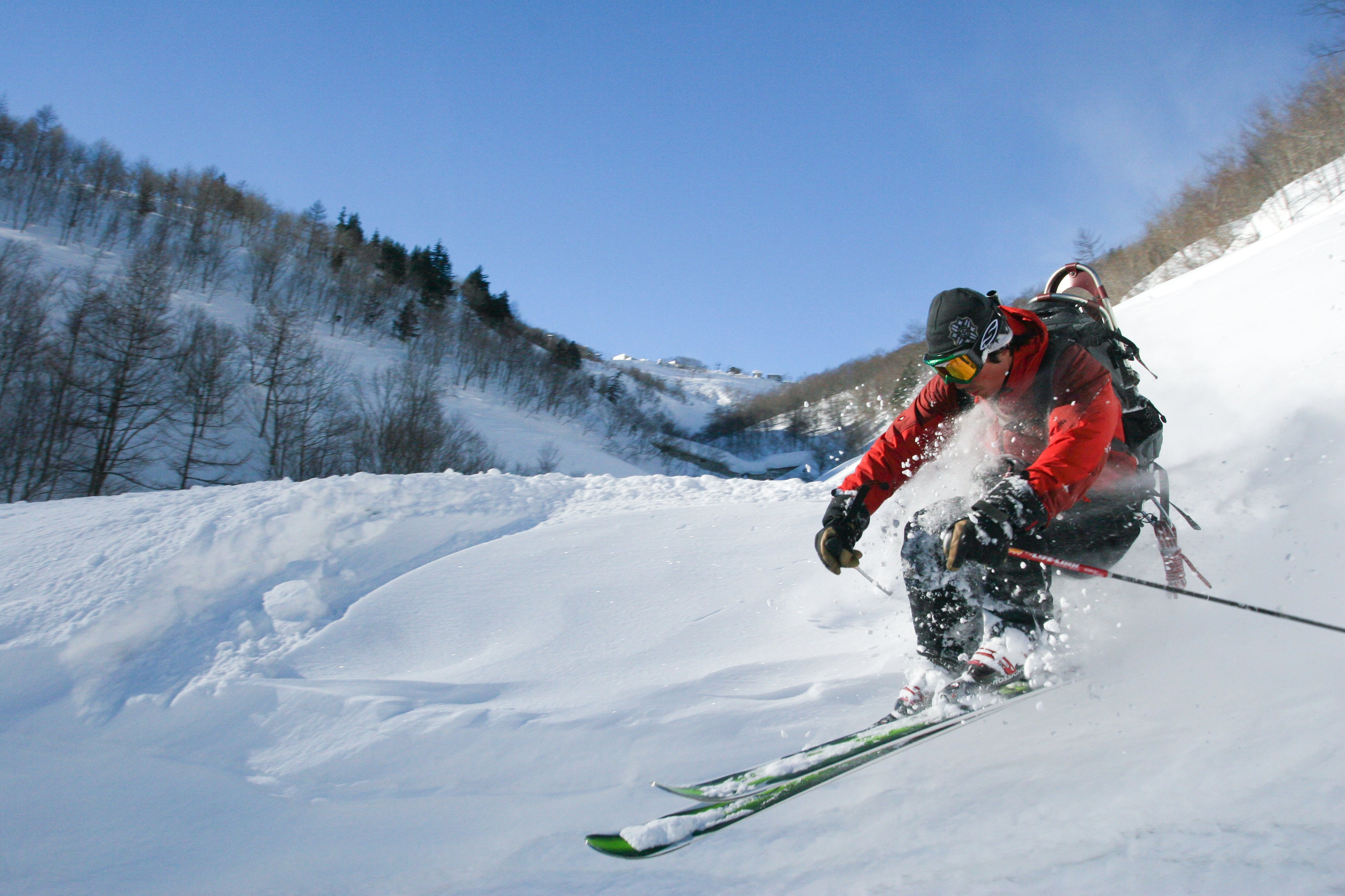 スキー場の楽しみ方はパウダーだけではなく、名物コースの「リーゼンスラロームコース」は、”朝一リーゼン”という言葉があるほど圧雪されたバーンでカービングが楽しめる。標高差800m、全長3,000mのコースは、白馬の街を見下ろし、絶景と爽快感がたまらないコース。