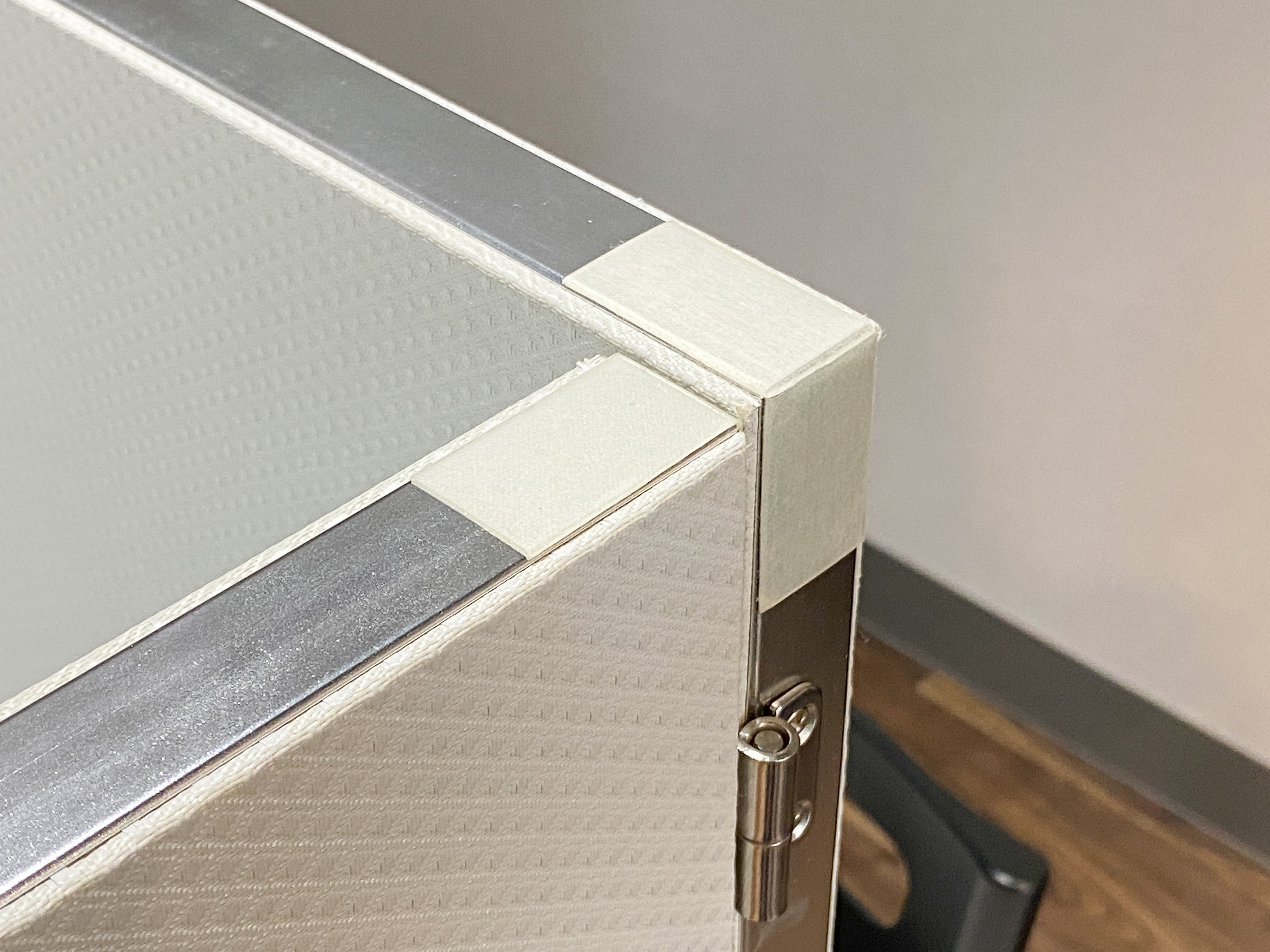 従来のパーテーションはポリエステルやウレタン素材作られているものが多い一方で、「ココスペースプラス」は吸音防音効果が優れている吸音材「グラスウール」を使用しています。それだけではなく、密度は120kg/m3と珍しい高密度のものを使用。