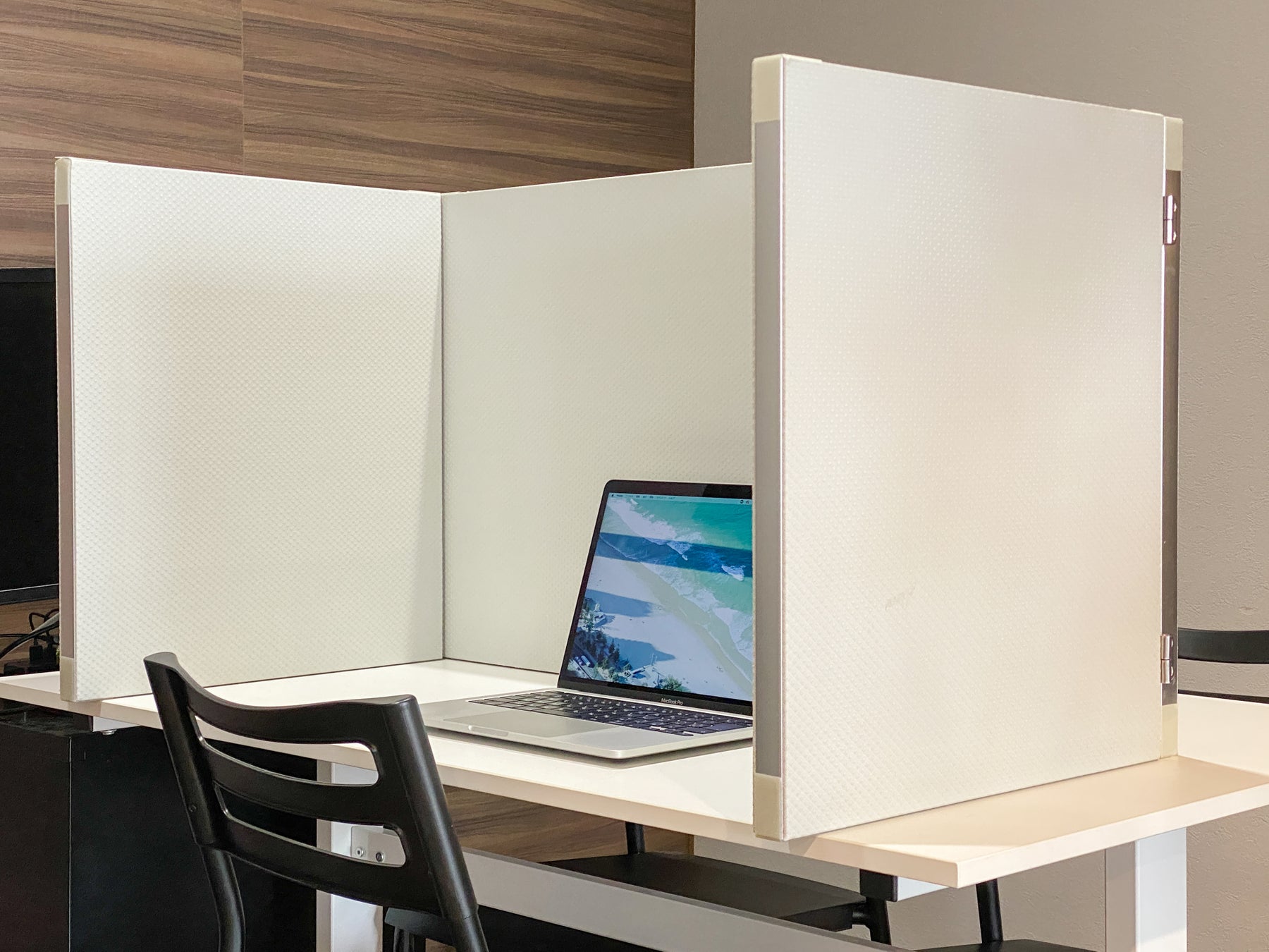 従来パーテーションは、ポリエステルやウレタン素材で作られたものが多く、周りへの音漏れ(防音)というより、お部屋内で響く音を防ぐ目的(吸音)で使用されていました。