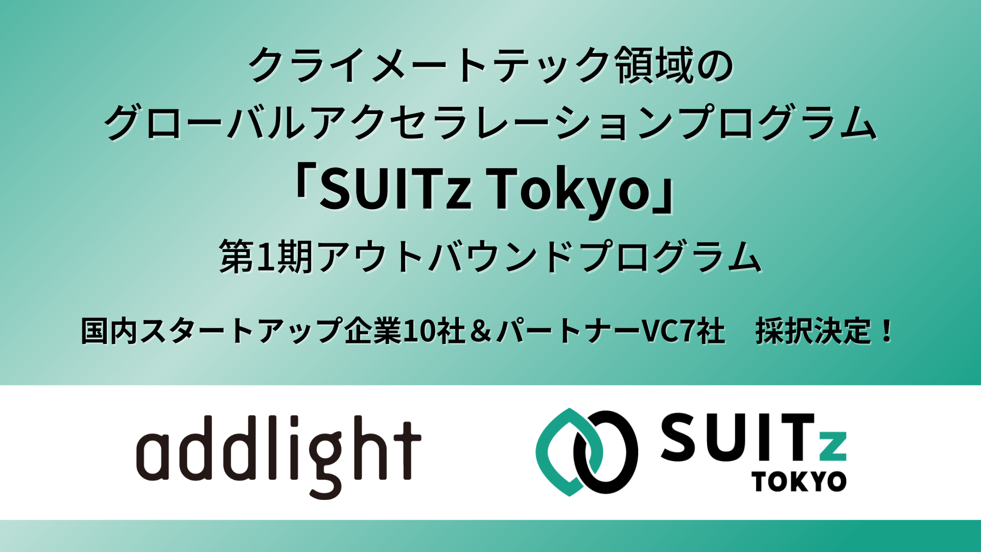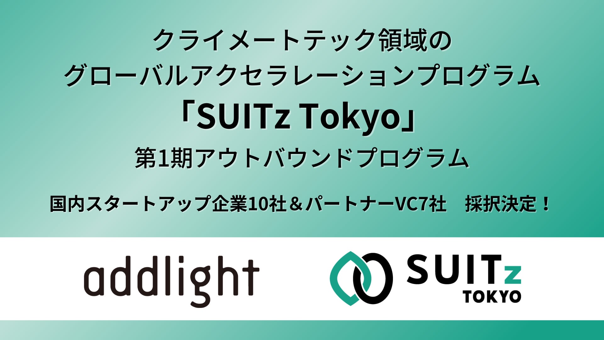 この度、①SUITz TOKYO Outbound Acceleration Program(海外展開を志す東京拠点のクライメートテック・スタートアップに対して、同分野に強みを持つグローバルVCとのマッチングの機会を提供し、資金調達を支援するプログラム)における、第1期に採択する国内スタートアップ企業10社と、パートナーVC7社を決定いたしました。