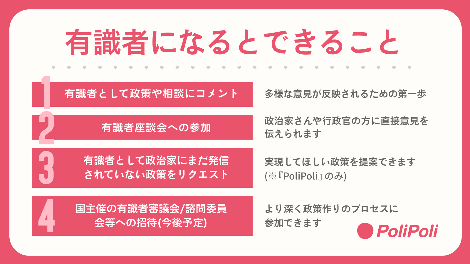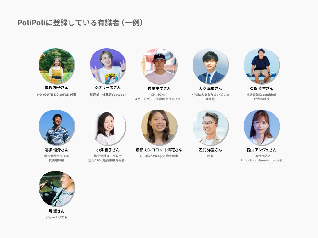 ・PoliPoliが特定の分野で専門性や実績を持つ「有識者ユーザー」の募集を推進