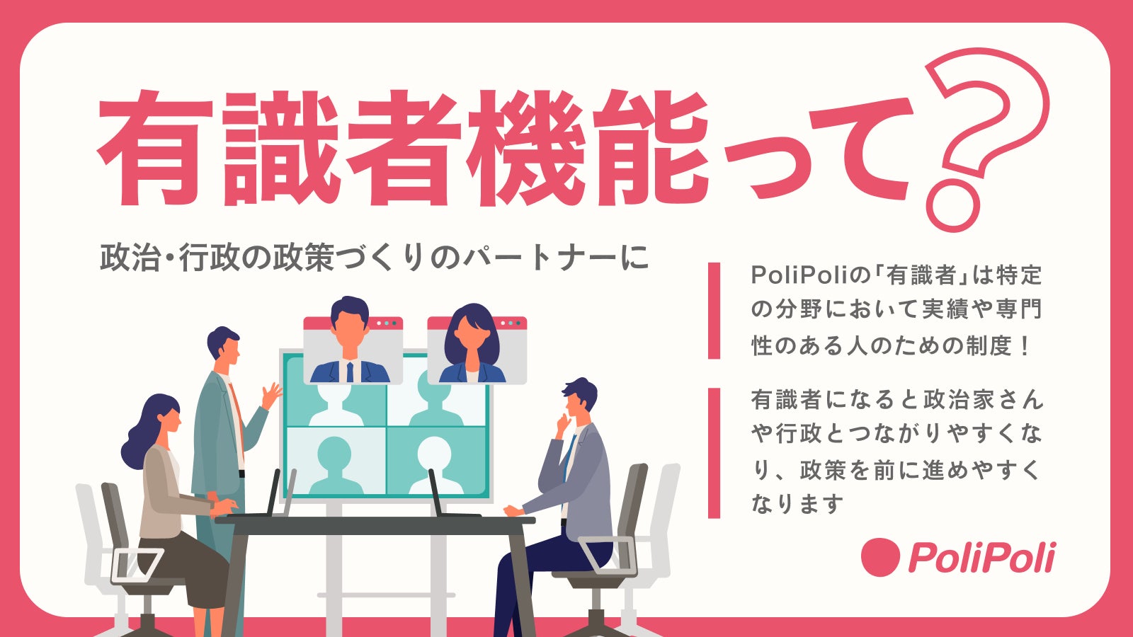 株式会社PoliPoli(所在地:神奈川県鎌倉市、代表取締役:伊藤和真、以下 PoliPoli)は、特定の分野や政策領域に専門性を持つ「有識者ユーザー」募集の強化に取り組み、さらなる推進を行うことをお知らせいたします。